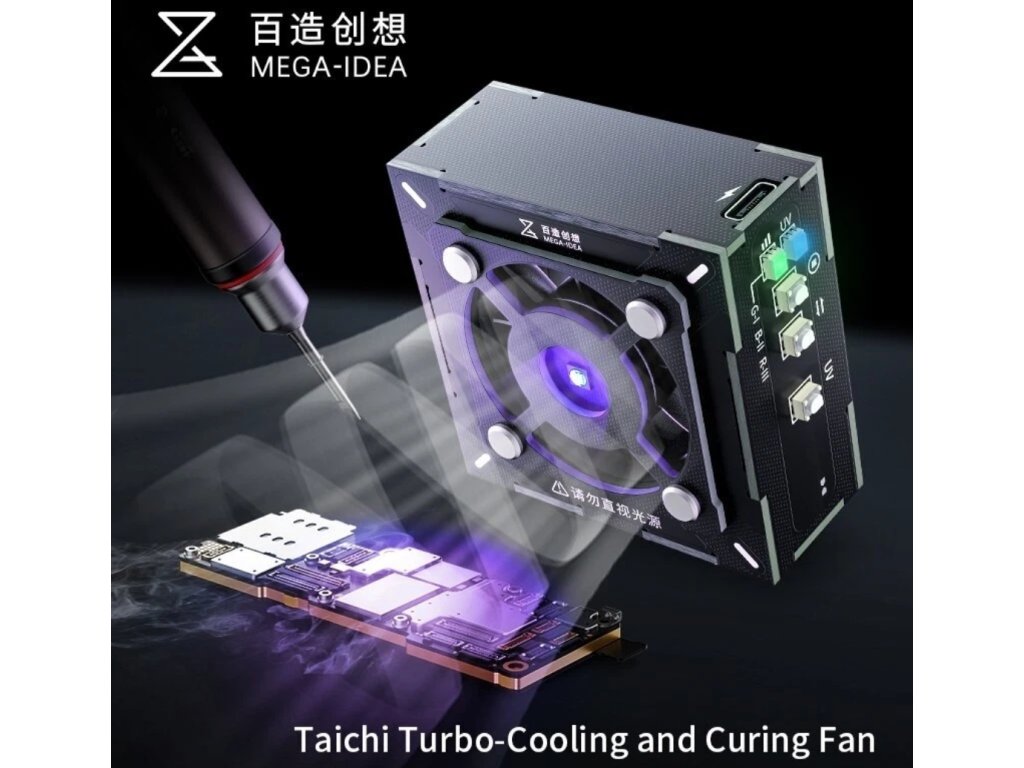 Urychlete své servisní práce s Mega-Idea Taichi Turbo Cooling and Curing Fan, revolučním zařízením 2 v 1, které kombinuje rychlé chlazení a efektivní UV vytvrzování. Tento multifunkční ventilátor je navržen tak, aby usnadnil opravy základních desek a čipů, minimalizoval čekací doby a zlepšil pracovní prostředí.