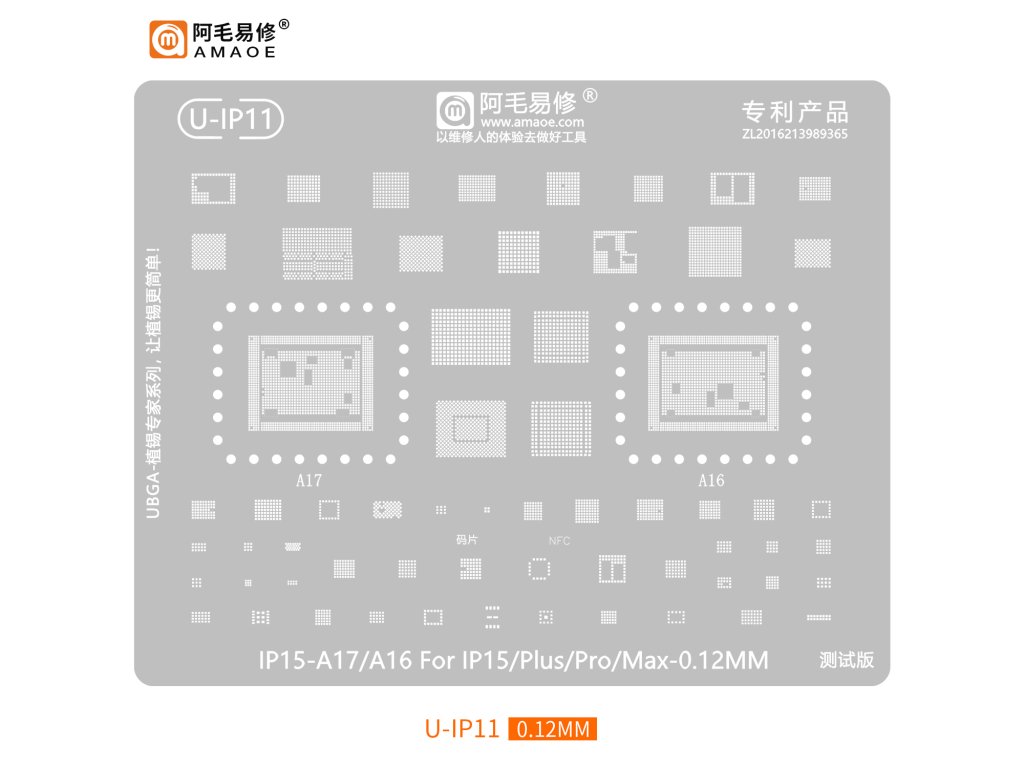 U-IP11 – precizní reballing šablona 0,12 mm pro iPhone 15 sérii (testovací verze)