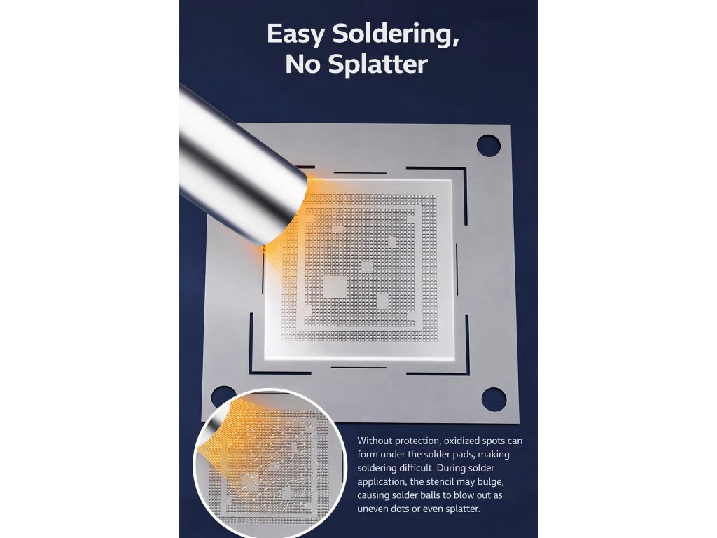 Eliminuje výbuch cínu: Hlavní funkce – účinně zabraňuje rozstřiku cínových kuliček v důsledku vydutí šablony.