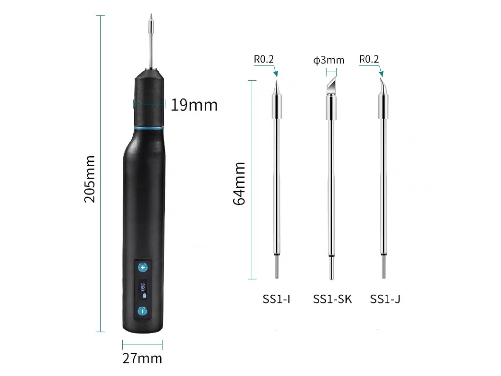 - Malý pájecí hrot pro precizní práce: Páječka je vybavena malým pájecím hrotem, který je perfektní pro detailní práce na základních deskách, mikro-komponentech a jemné pájení.